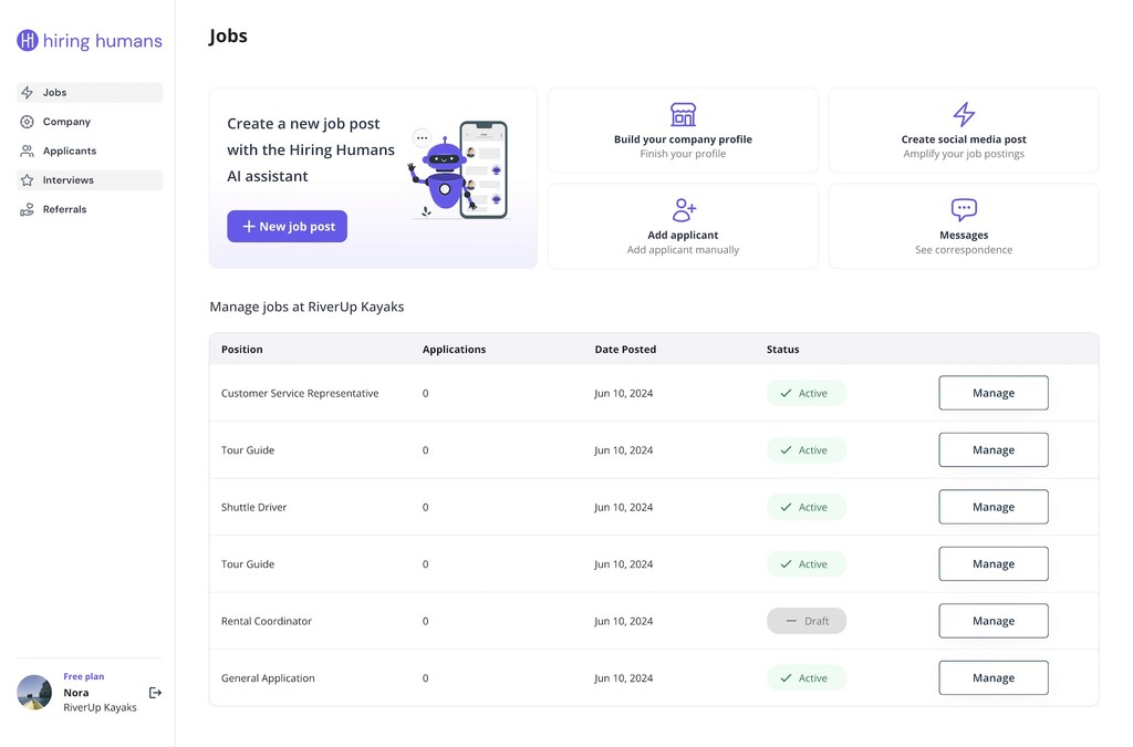 Hiring Humans transforms the hiring landscape, prioritizing personality-driven connections over outdated resumes. Our platform features AI-powered job posts, video applications, and efficient screening tools, fostering authentic connections between businesses and applicants.